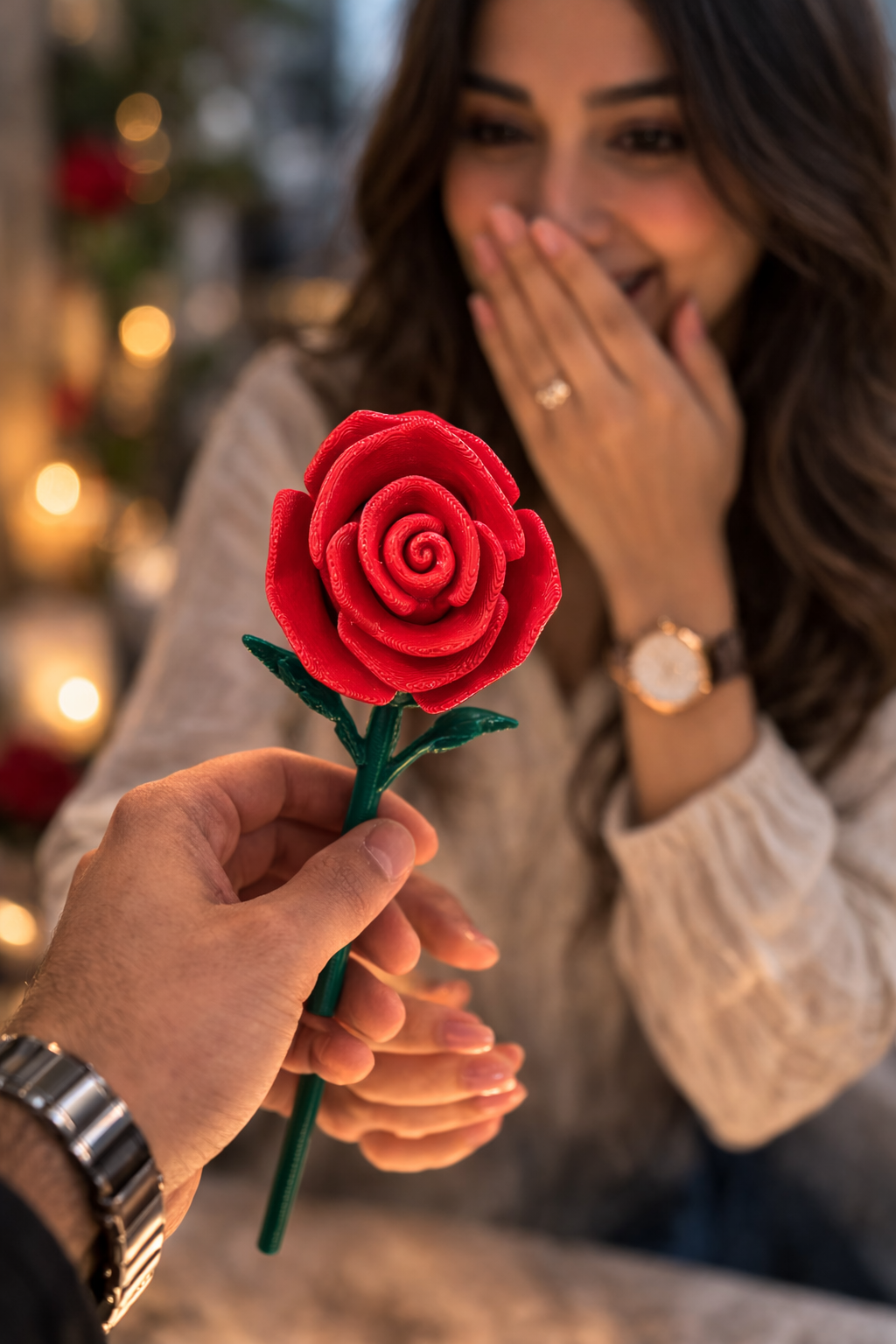 Expertly crafted using advanced 3D printing technology, these Roses are a unique and modern take on the traditional flower. Made with precision and attention to detail, these roses offer a lasting beauty that will never wilt or fade. Perfect for special occasions or as a thoughtful gift, these roses are sure to impress.